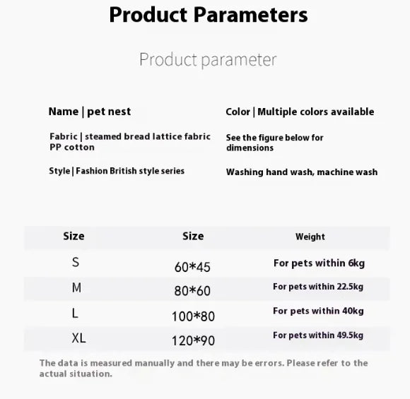 Give your pet the ultimate comfort with this Four Seasons Universal Removable and Washable Kennel. Designed for year-round use, this pet bed features a breathable yet cozy fabric that keeps pets cool in summer and warm in winter. The removable and machine-washable cover ensures easy cleaning and hygiene, while its soft, cushioned design provides maximum relaxation for your furry friend. Perfect for cats, dogs, and small pets!